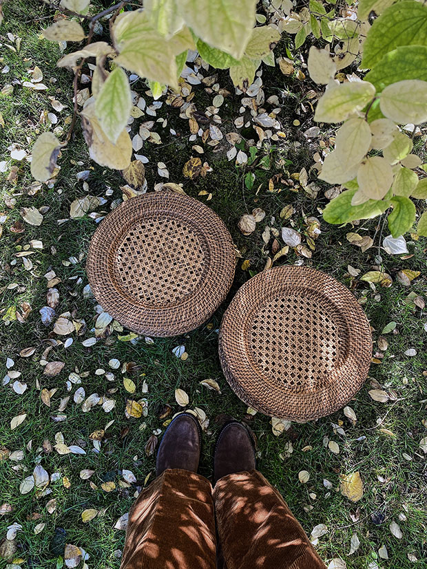 I kylskåpet har jag jordärtskockor och skogschampinjoner för höstens första gryta. Ett utmärkt tillfälle att använda mina alldeles nyfyndade undertallrikar i rotting. Som sakletare är man inte van att finna många, men här stod tolv stycken i en stapel. En typisk sak som jag tycker om, men som jag kanske inte aktivt skulle införskaffa. Jag tänker att det kan bli riktigt fina dukningar. Rotting gillar man ju.
