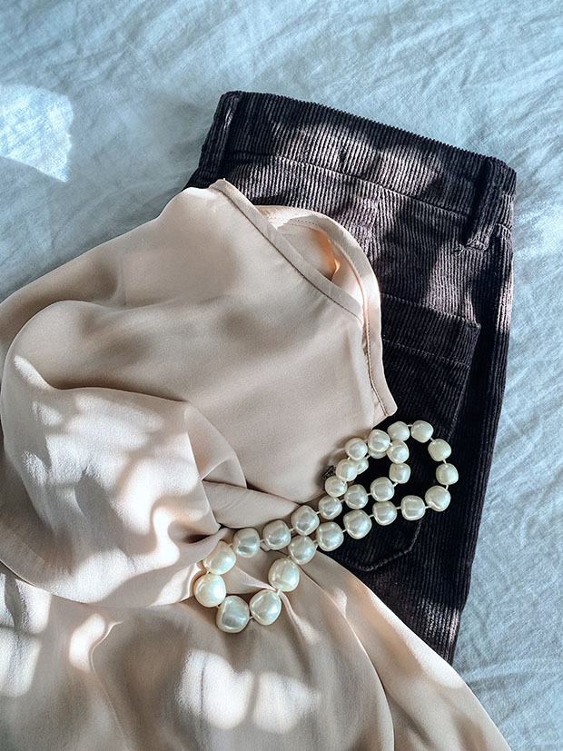 Manchester är alltid en höstklassiker men syns mer eller mindre i modebilden. Denna höst är glansen tillbaka. Jag kombinerar gärna med något mjukt till det sträva tyget. Möten mellan material är alltid fint, liksom det bruna som möter det rosa.